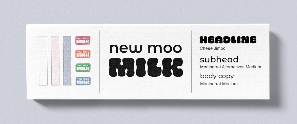 Target Audience: Trying new things can be intimidating, especially when that something contradicts with our current opinions or understandings. New Moo Milk was designed to be straight-to-the-point, but playful. Large, bold type on the front of the carton makes it easily identifiable as to what it is. The friendly nature of the design is intended to make the consumer feel excited and open to trying the product.