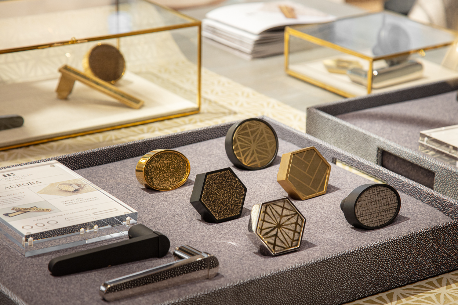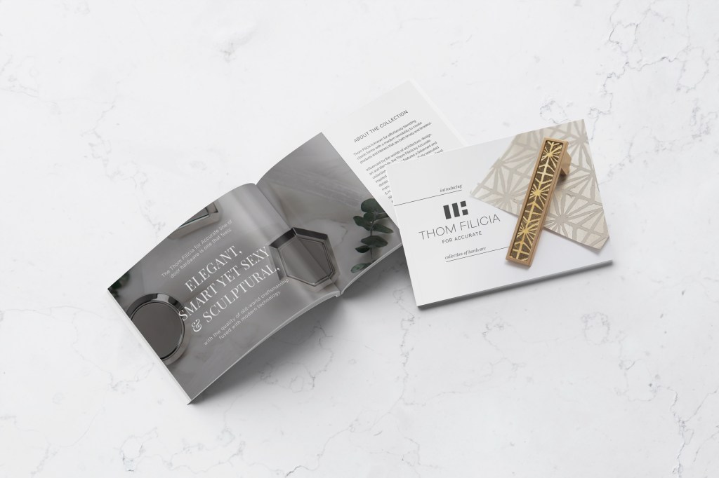 Materials developed included Collection-specific signage that was displayed alongside the hardware, printed lookbooks, posters, double-sided flyers, and keychain bottle openers paired with handmade, gold foiled tags to add a luxury feel.